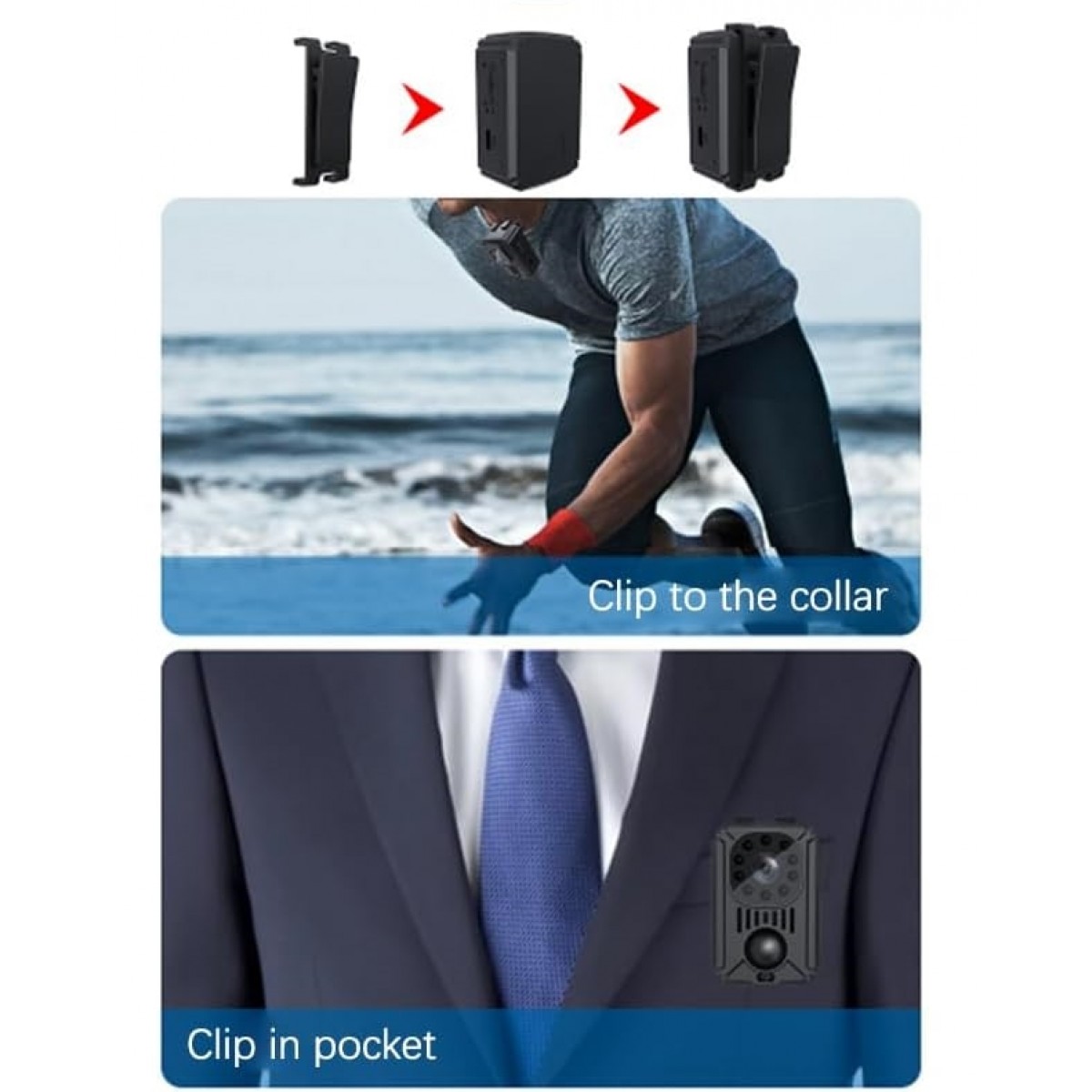 [Klipsli Tasarım] Taşınabilir video kaydedici, onu yakanıza, cebinize veya sırt çantanıza kolayca takmanıza olanak tanıyan klipsli bir tasarıma sahiptir, böylece gittiğiniz her yerde taşımanız ve kullanmanız uygundur.
