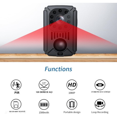 【Geniş Açılı Lens】 1080P yüksek çözünürlüklü 120° geniş açılı lensle mini gövde kamerası net ve ayrıntılı videolar çeker. Bu, çerçevedeki her şeyi net bir şekilde görebilmenizi sağlar.