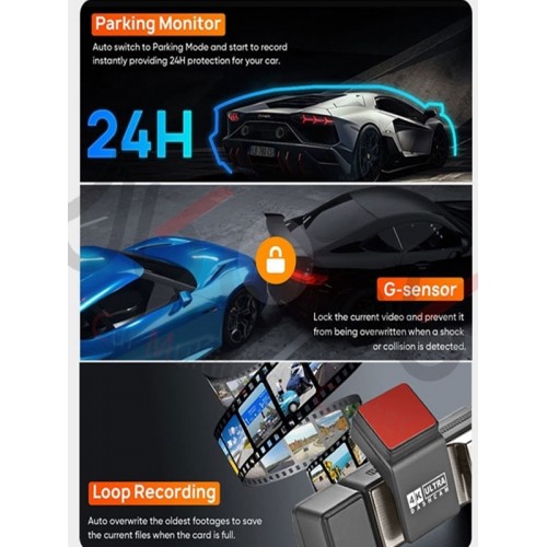 Kingline Gps'li A3 Model 4K Araç Kamerası 3 Kameralı